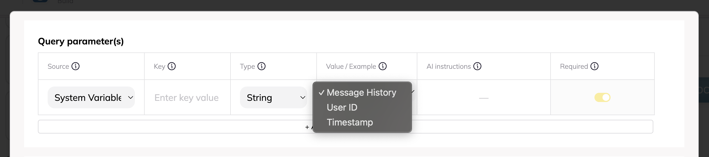 | `{{system.timestamp}}` | String | Unix timestamp |